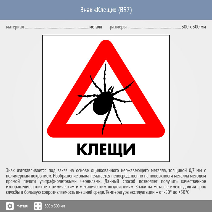 Знак «Клещи», B97 (металл, 200х200 мм) в Ожерелье купить