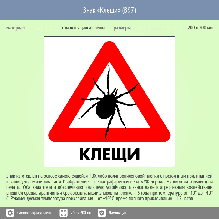 Знак «Клещи», B97 (пленка c ламинированием, 300х300 мм) в Ожерелье купить