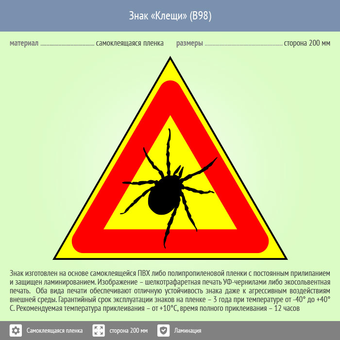 Знак «Клещи», B98 (пленка c ламинированием, сторона 300 мм) в Ожерелье купить