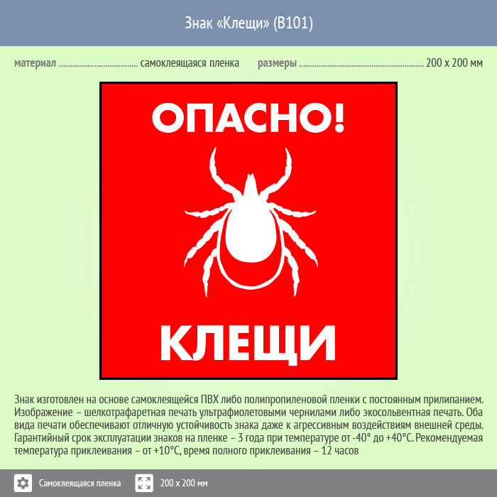 Знак «Опасно! Клещи», B101 (пленка, 200х200 мм) в Ожерелье купить