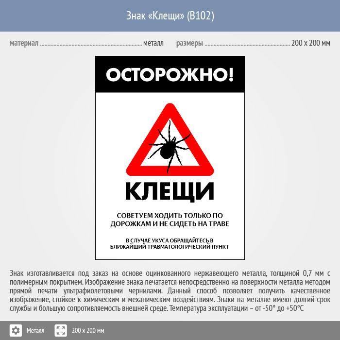 Знак «Осторожно! Клещи», B102 (металл, 400х600 мм) в Ожерелье купить