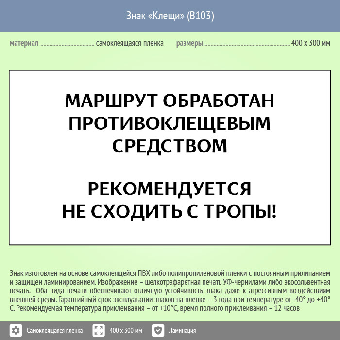 Знак «Клещи», B103 (пленка c ламинированием, 300х200 мм) в Ожерелье купить