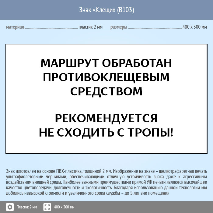 Знак «Клещи», B103 (пластик, 300х200 мм) в Ожерелье купить