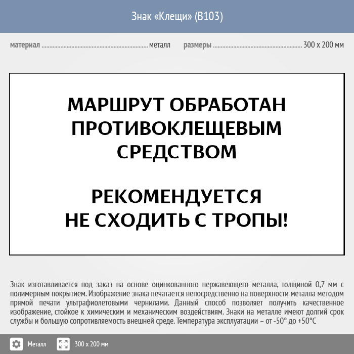 Знак «Клещи», B103 (металл, 400х300 мм) в Ожерелье купить