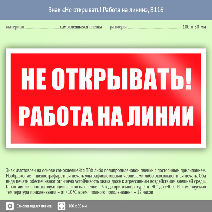 Знак «Не открывать! Работа на линии», B116 (пленка, 100х50 мм) в Ожерелье купить