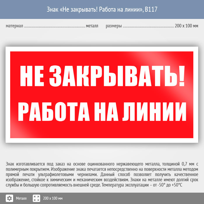Знак «Не закрывать! Работа на линии», B117 (металл, 200х100 мм) в Ожерелье купить