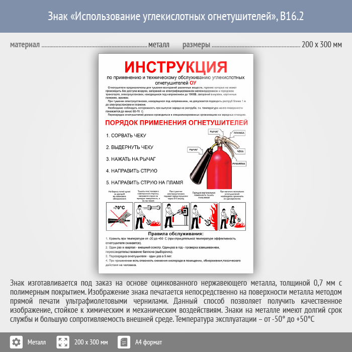 Знак «Использование углекислотных огнетушителей», B16.2 (металл, 200х300 мм) в Ожерелье купить
