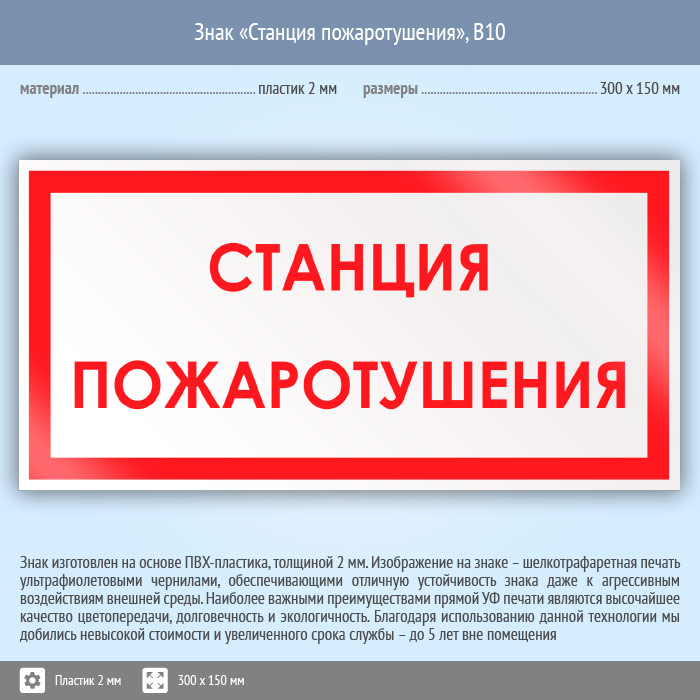 Знак «Станция пожаротушения», B10 (пластик, 300х150 мм) в Ожерелье купить