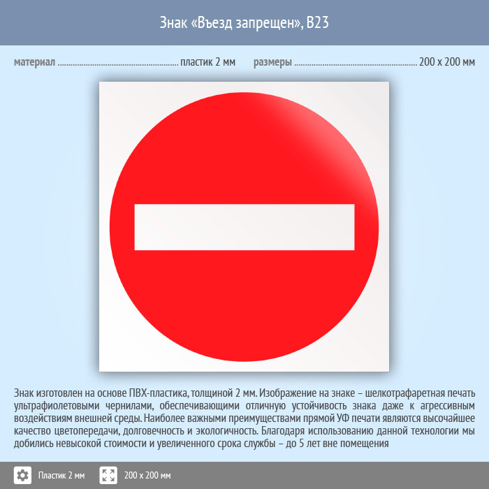 Знак «Въезд запрещен», B23 (пластик, 200х200 мм) в Ожерелье купить