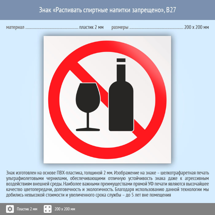 Знак «Распивать спиртные напитки запрещено», B27 (пластик, 200х200 мм) в Ожерелье купить