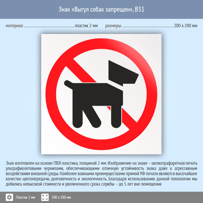 Знак «Выгул собак запрещен», B31 (пластик, 200х200 мм) в Ожерелье купить
