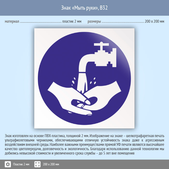 Знак «Мыть руки», B32 (пластик, 200х200 мм) в Ожерелье купить