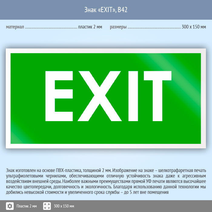 Знак «EXIT», B42 (пластик, 300х150 мм) в Ожерелье купить