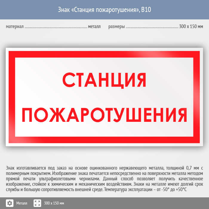 Знак «Станция пожаротушения», B10 (металл, 300х150 мм) в Ожерелье купить