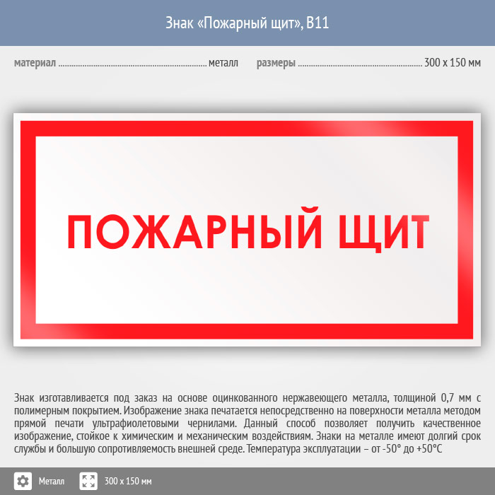 Знак «Пожарный щит», B11 (металл, 300х150 мм) в Ожерелье купить