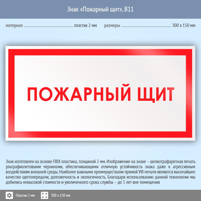 Знак «Пожарный щит», B11 (пластик, 300х150 мм) в Ожерелье купить