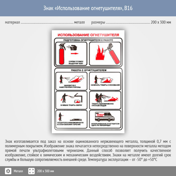 Знак «Использование огнетушителя», B16 (металл, 200х300 мм) в Ожерелье купить