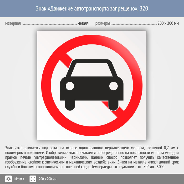 Знак «Движение автотранспорта запрещено», B20 (металл, 200х200 мм) в Ожерелье купить