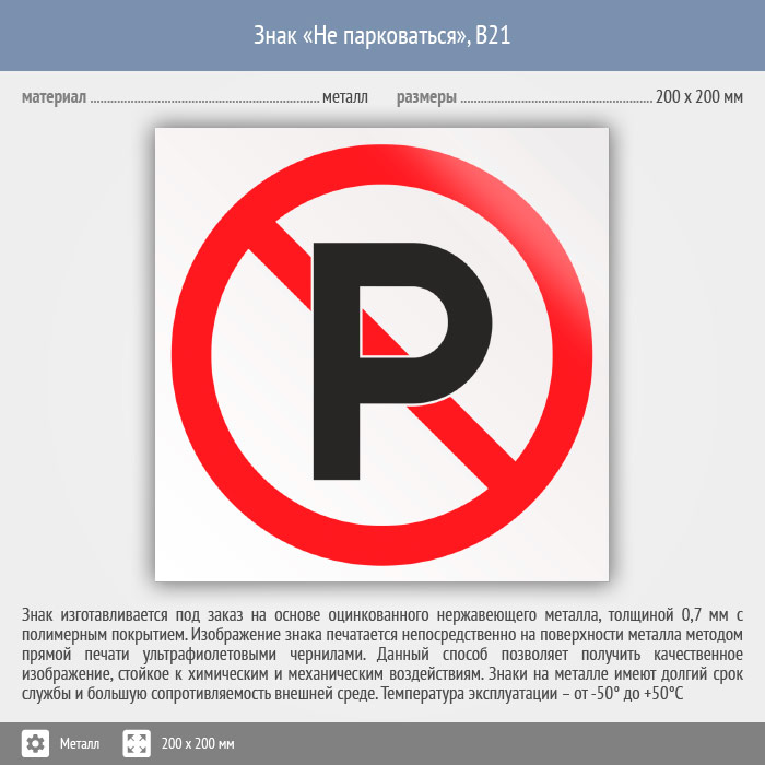 Знак «Не парковаться», B21 (металл, 200х200 мм) в Ожерелье купить