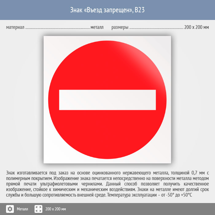 Знак «Въезд запрещен», B23 (металл, 200х200 мм) в Ожерелье купить