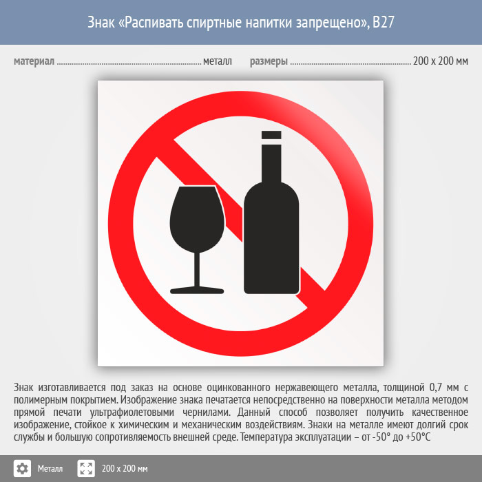 Знак «Распивать спиртные напитки запрещено», B27 (металл, 200х200 мм) в Ожерелье купить