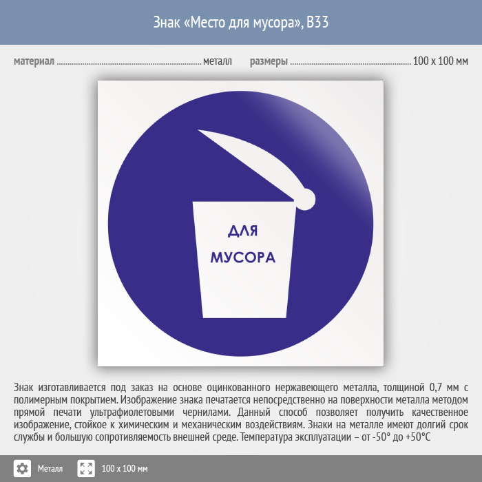 Знак «Место для мусора», B33 (металл, 100х100 мм) в Ожерелье купить