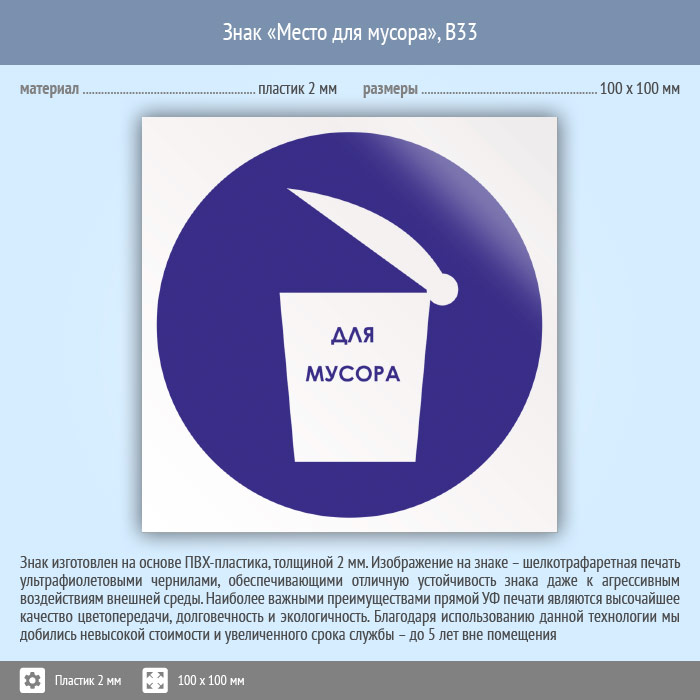 Знак «Место для мусора», B33 (пластик, 100х100 мм) в Ожерелье купить