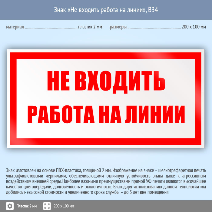 Знак «Не входить работа на линии», B34 (пластик, 200х100 мм) в Ожерелье купить