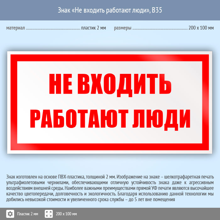 Знак «Не входить работают люди», B35 (пластик, 200х100 мм) в Ожерелье купить