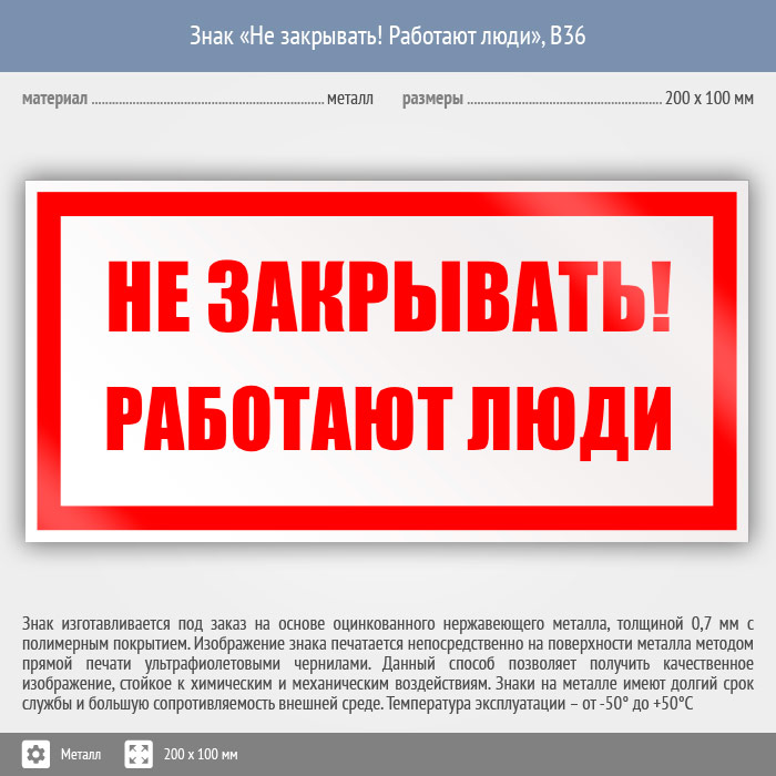 Знак «Не закрывать! Работают люди», B36 (металл, 200х100 мм) в Ожерелье купить