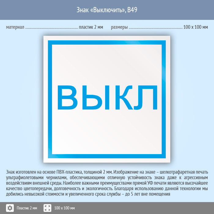 Знак «Выключить», B49 (пластик, 100х100 мм) в Ожерелье купить