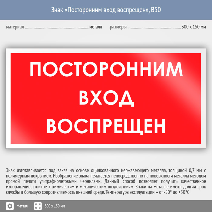 Знак «Посторонним вход воспрещен», B50 (металл, 300х150 мм) в Ожерелье купить