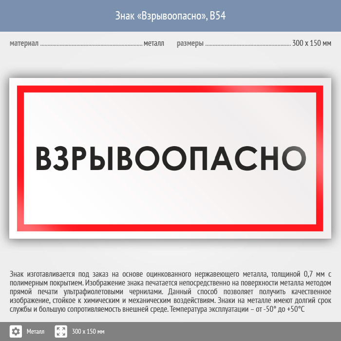 Знак «Взрывоопасно», B54 (металл, 300х150 мм) в Ожерелье купить