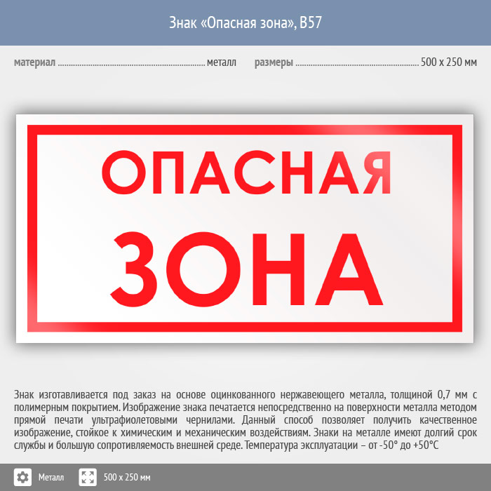 Знак «Опасная зона», B57 (металл, 500х250 мм) в Ожерелье купить