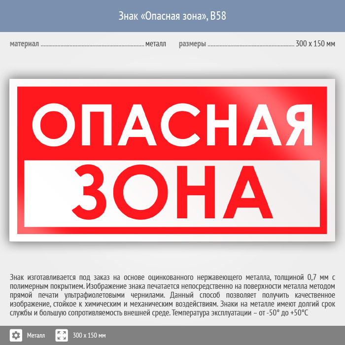 Знак «Опасная зона», B58 (металл, 300х150 мм) в Ожерелье купить