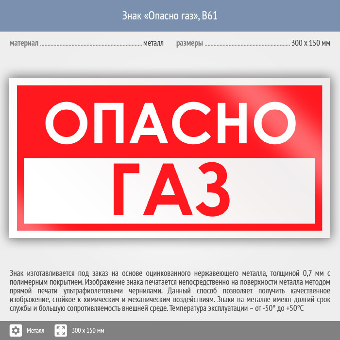 Знак «Опасно газ», B61 (металл, 300х150 мм) в Ожерелье купить