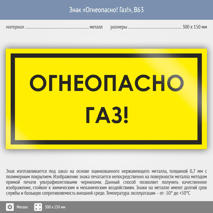 Знак «Огнеопасно! Газ!», B63 (металл, 300х150 мм) в Ожерелье купить