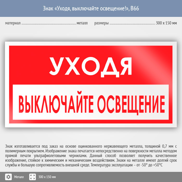 Знак «Уходя, выключайте освещение!», B66 (металл, 300х150 мм) в Ожерелье купить