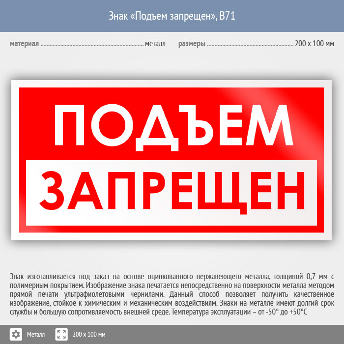 Знак «Подъем запрещен», B71 (металл, 200х100 мм) в Ожерелье купить