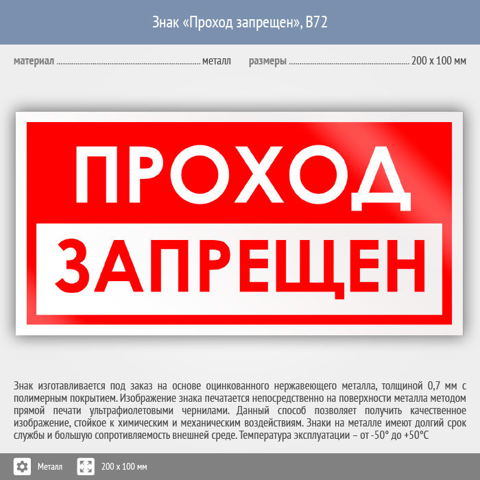 Знак «Проход запрещен», B72 (металл, 200х100 мм) в Ожерелье купить