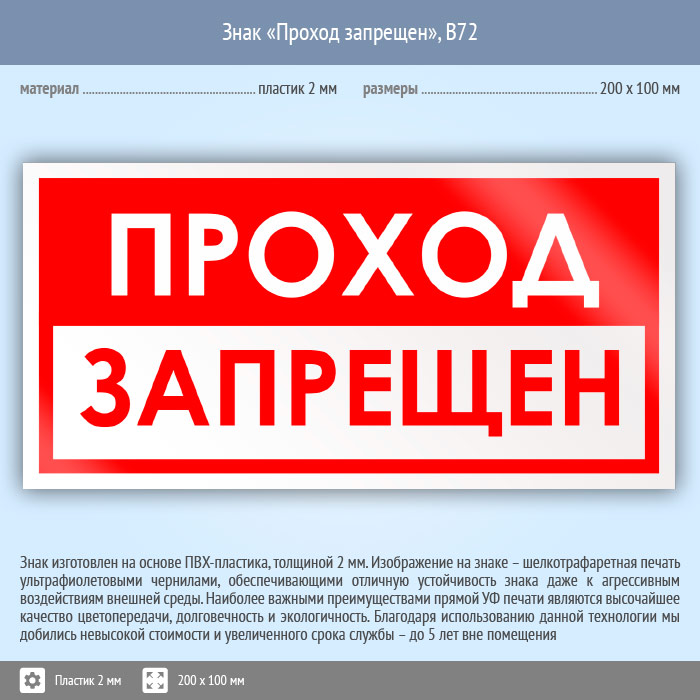 Знак «Проход запрещен», B72 (пластик, 200х100 мм) в Ожерелье купить