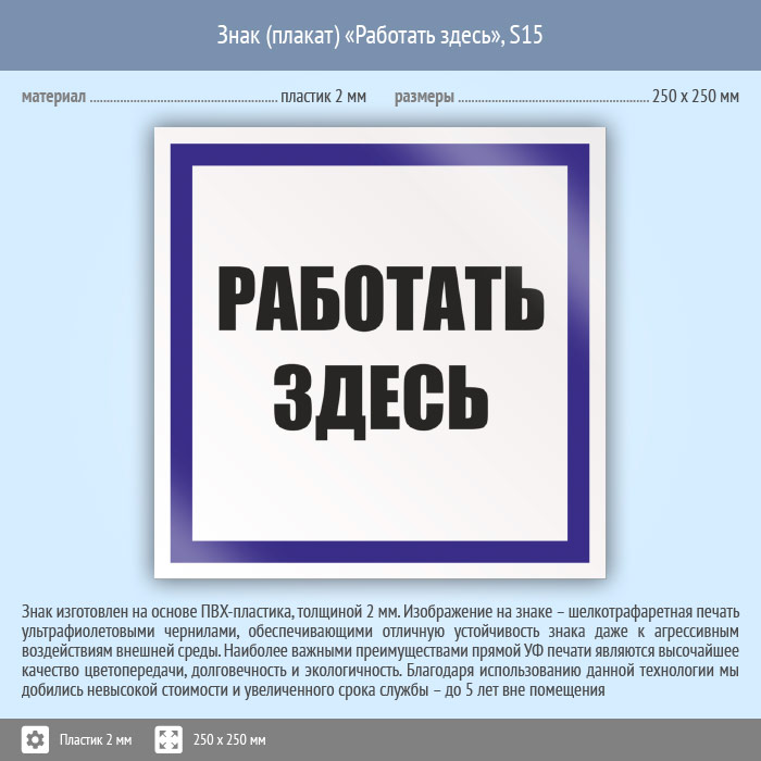 Знак (плакат) «Работать здесь», S15 (пластик, 250х250 мм) в Ожерелье купить