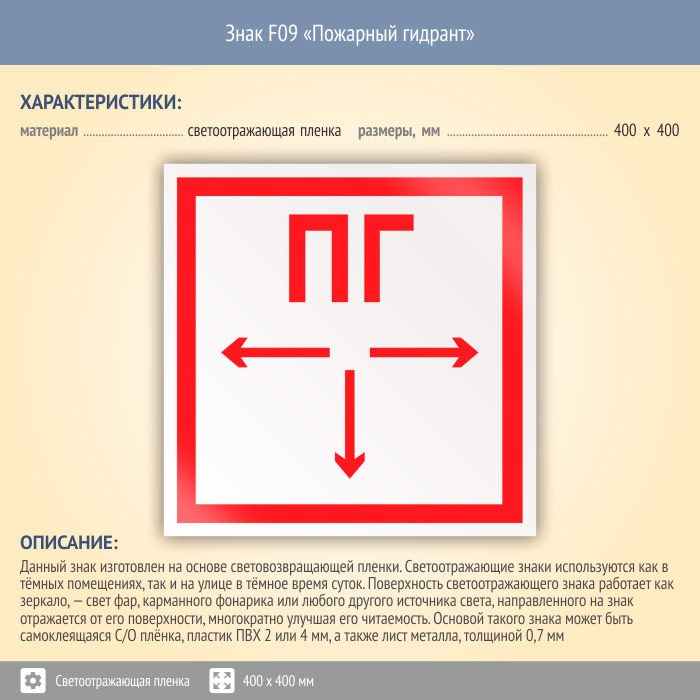 Знак F09 «Пожарный гидрант» (светоотражающая пленка, 400х400 мм) в Ожерелье купить