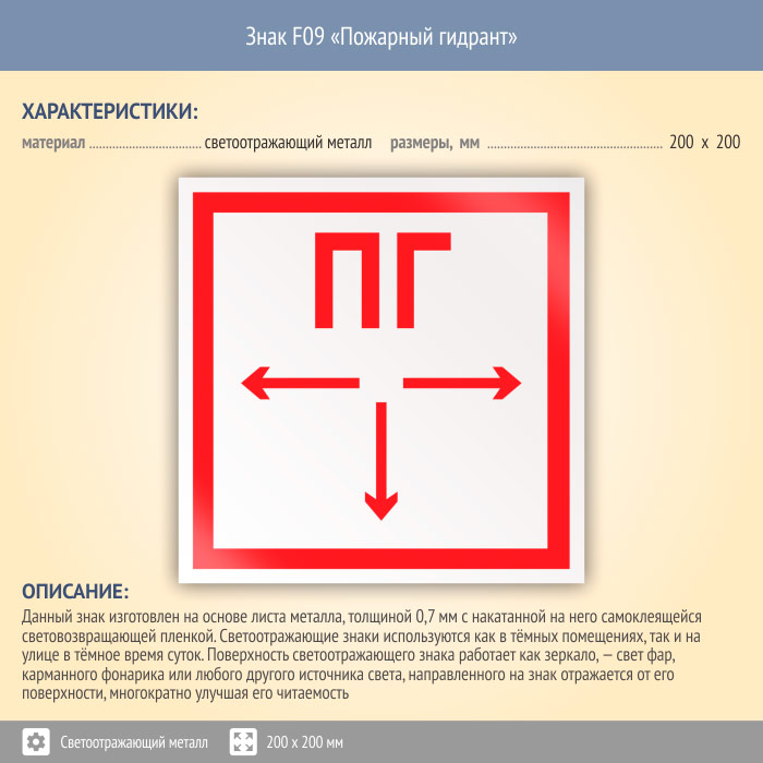 Знак F09 «Пожарный гидрант» (светоотражающий металл, 200х200 мм) в Ожерелье купить
