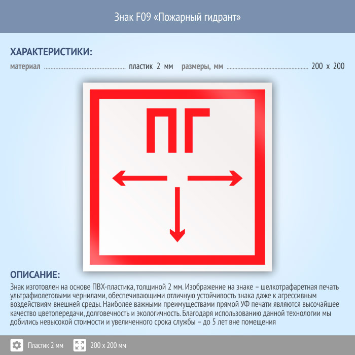 Знак F09 «Пожарный гидрант» (пластик, 200х200 мм) в Ожерелье купить